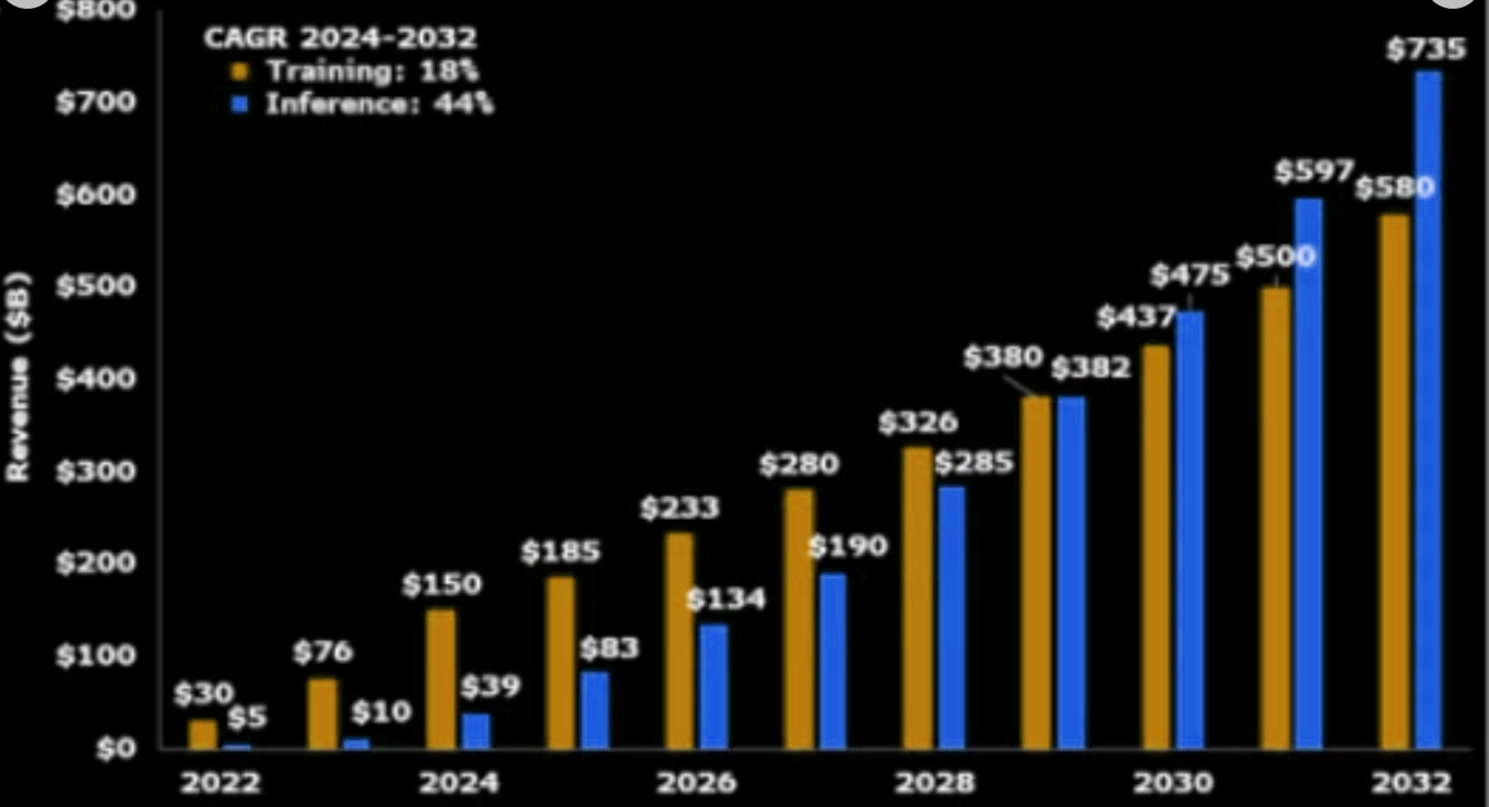 AI inference rev. estimated to grow 44% CAGR until ’32.