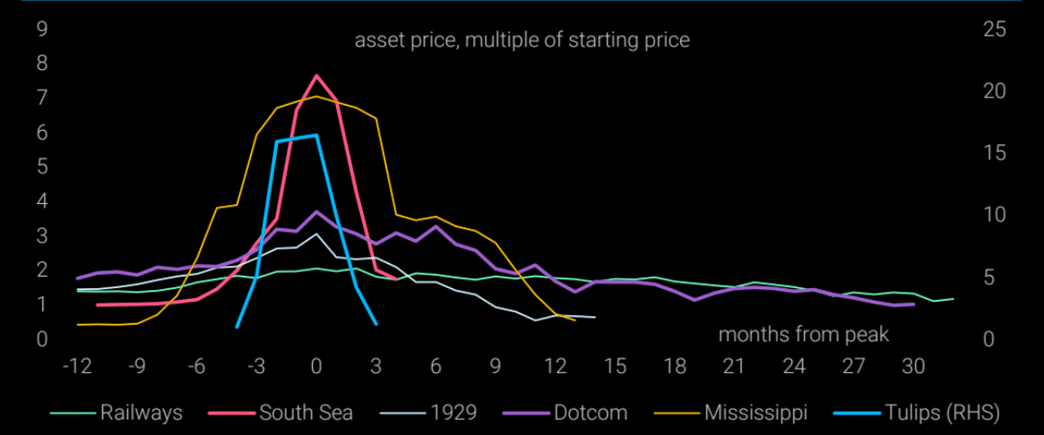 UBS sees a potential bubble here: The bubble risk sits in the margins of tech, particularly semis. Margins typically compress as capital intensity rises and competition expands – think OpenAI partnering to produce more ASICs through JVs or moving into browsers and online advertising, encroaching on existing players’ turf.