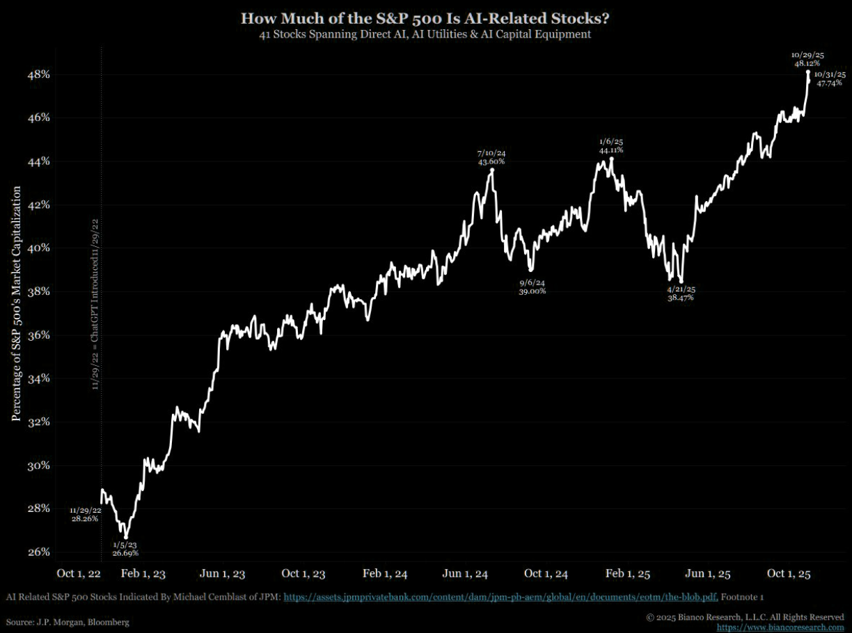 AI stocks are already at a record concentration for one theme, 48% of the S&P 500.