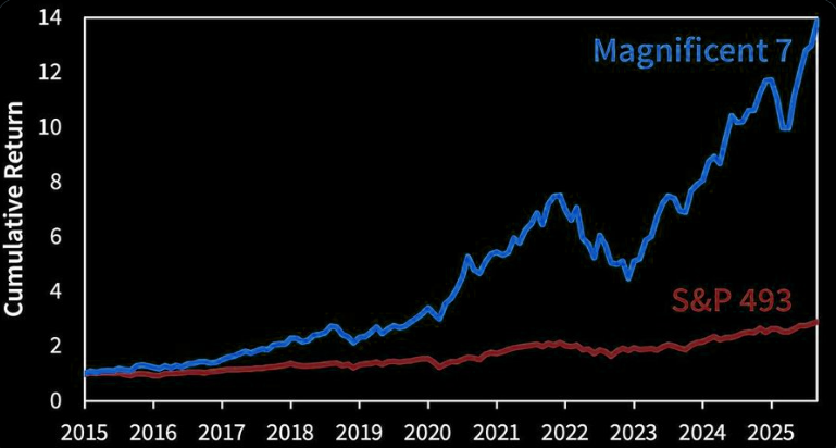 AI mentions on earnings calls have exploded tenfold. Retail traders are back chasing the Mag7. Tech giants are borrowing record sums to fund data centers. For now, optimism is profit — but history calls this stage “late cycle.” Here is the latest collection of AI & Mag7 related charts.
