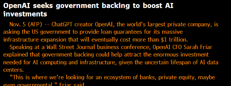 “Why does Sam Altman need the taxpayer to guarantee their debt if they are going to make hundreds and hundreds of billions of dollars? Has he just done a cash analysis and realised he’s cash flow short?” (Julian Brigden)