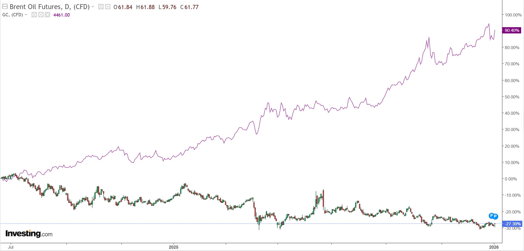Gold appears tired. Oil has died.