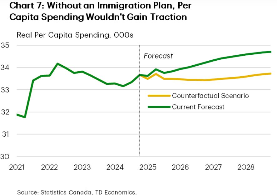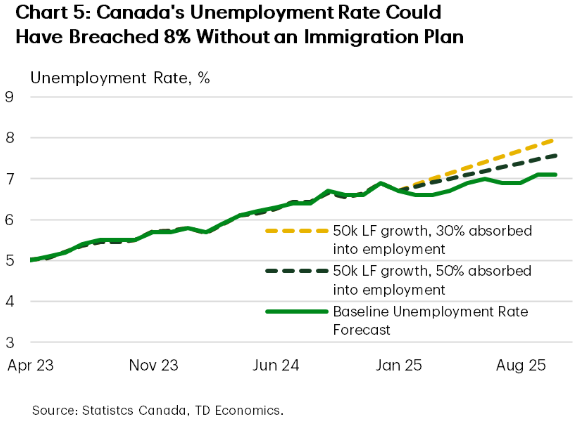 “Canada’s current unemployment rate would likely be at least 1 ppt higher if immigration growth had continued unabated.”
