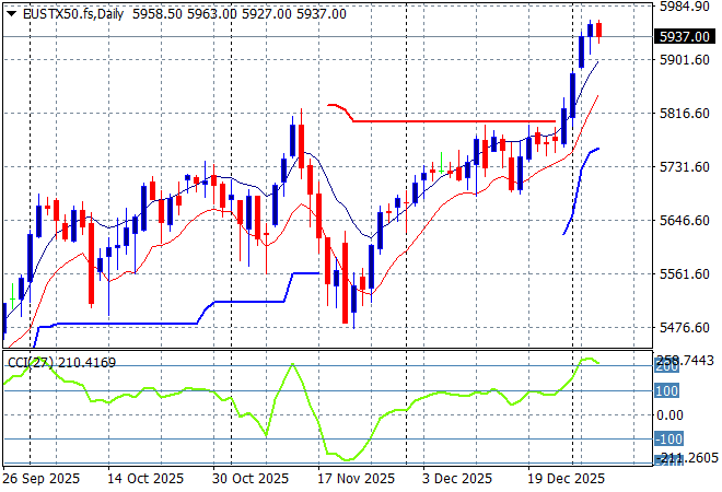 Gold had been using the $4300USD per ounce level as strong support throughout the NY/Xmas period and made a comeback on USD weakness although it paused overnight just below the $4500USD per ounce level.