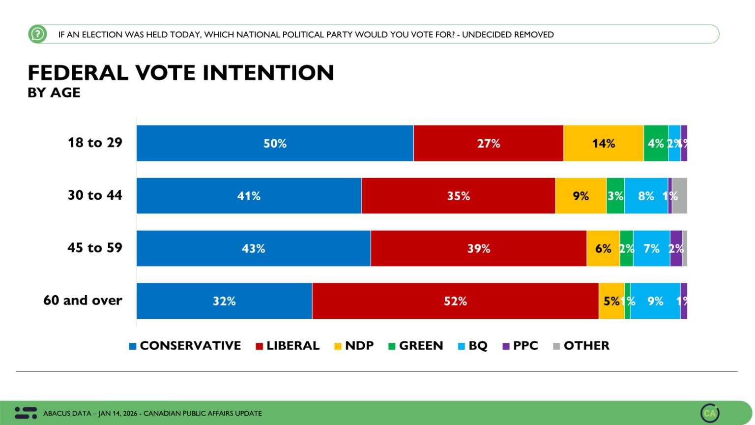 This is a demographic where right-wing anti-high immigration parties, such as the Canadian Conservatives, have done quite well, now securing 50% of the primary vote of Canadians aged 18 to 29.