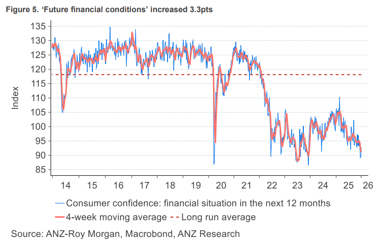 The outlook for the financial situation for households over the next 12 months remains near Covid era lows.