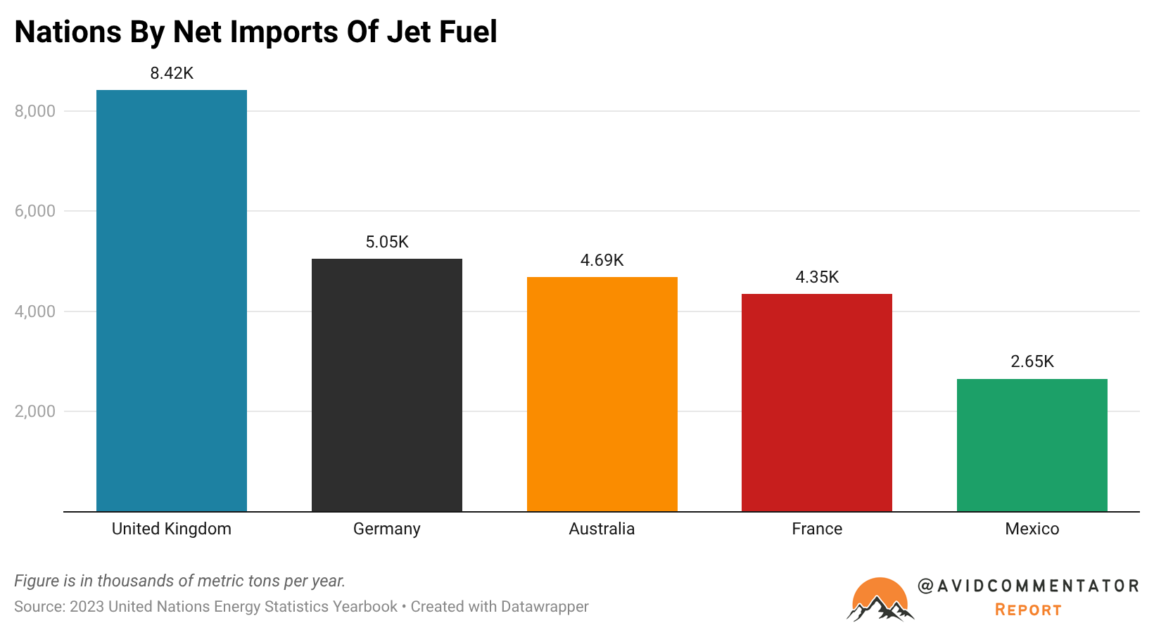 According to figures from the United Nations Energy Statistics Handbook for 2023, the five largest net importers of jet fuel are: