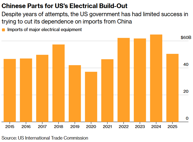 While the U.S. has attempted to expand its manufacturing of major electrical equipment over the past decade in particular, the rise in domestic demand coupled with a relatively slow ramp-up in production has seen a strong degree of reliance on China remain.